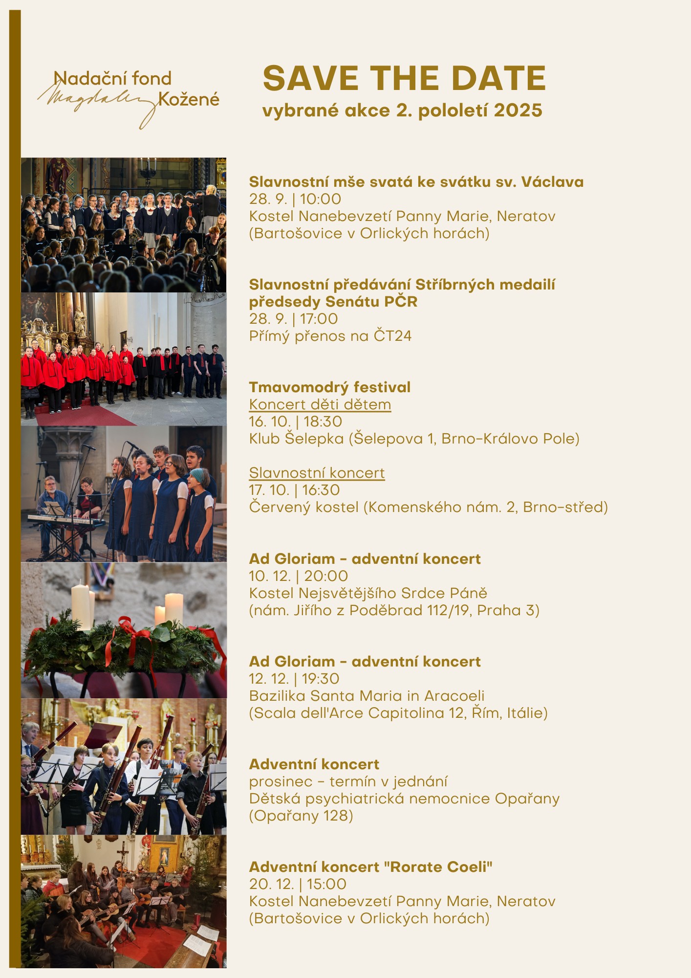 I v novém školním roce se těšíme, že se s Vámi budeme potkávat na akcích nadačního fondu. Čeká nás mnoho akcí, vystoupení, festivalů a koncertů. Přehled nejdůležitějších akcí naleznete v přiloženém dokumentu SAVE THE DATE.